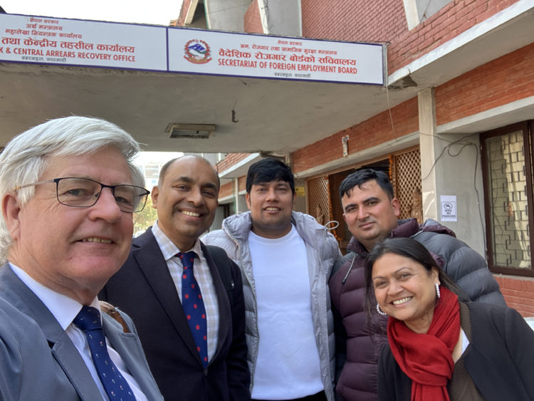 Hari Harindranath and Tim Unwin with migrants, migrant organisations and tech organisations in Kathmandu, January 2023