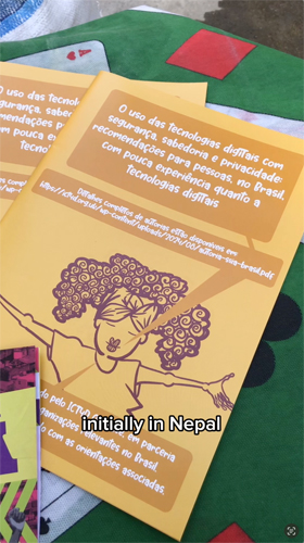 Building on our research-practice in the MIDEQ Hub, funded by the UKRI GCRF, between 2019 and 2024, we have been working with colleagues in Brazil during 2024 to reversion and develop resources on the safe, wise and secure use of digital technologies. These were originally created with migrants and migrant organisations in Nepal and South Africa, but discussions with Dr. Heloisa Melino in Rio de Janeiro in September 2023 suggested that they could also be useful for those living nas periferias of Brazil. Subsequent funding from the UK’s Economic and Social Research Council (ESRC) through its Social Science Impact Accelerator at Royal Holloway, University of London, enabled us to put this into action, and following design workshops in São Paulo and Rio de Janeiro in April 2024, a series of new resources were developed in formats that would be appealing, especially for the LBT community in Maré.