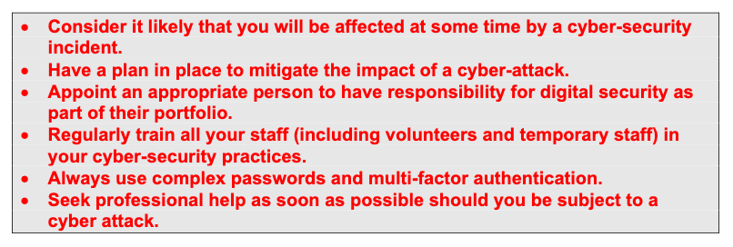 • Your staff: highest risk, and first line of defence