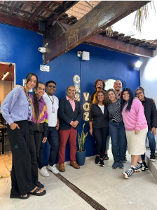 The visit also enabled Hari and Heloisa to meet with Voz das Comunidades, a community media organisation based in the Complexo do Alemão (Alemão complex of favelas in Rio) where they presented their ongoing work on the safe, wise and secure use of digital tech in the peripheries. The team at Voz shared their experiences of working in the challenging context of the favelas and the importance of physical and online safety as they go about recording and reporting on community matters.