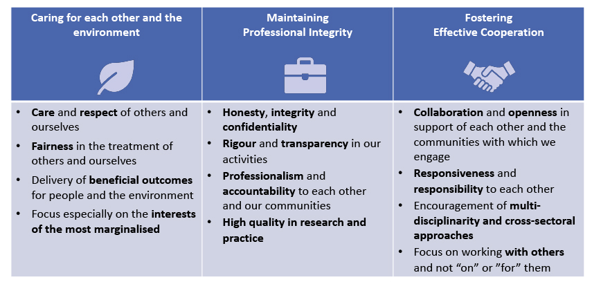 DESC is committed to excellence in all that it undertakes, and considers that matters of ethics, transparency and the support for diversity are central to achieving such a commitment. DESC encourages all Members, Associate Members and partners to strive to do to others as they would have them do to themselves, whilst also recognising that others may have different ethical views to their own. A visual summary of DESC’s overall guidelines is provided at the top of this page and a visual representation for DESC’s meetings and workshops is also presented below.