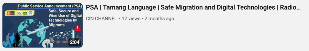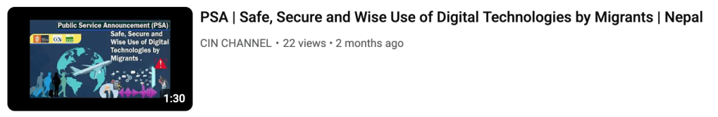 Below are short videos in Nepali, Maithili and English by returned migrants and those working for migrant organisations sharing their views on why the platform we developed together (pardesi.org.np) is the go-to place for Nepali migrants and their families. Some of the videos also make reference to a second element of our work in Nepal which has been the development of training resources on the importance of safe, wise and secure/private use of digital tech, which are available in six Nepali languages.