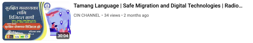 The second 30-minute episode centred on the secure use of digital technologies for safe migration, available at https://fb.watch/qlC97bx-gA/ and https://ict4d.org.uk/2024/03/01/further-new-material-for-migrants-shared-in-nepal-through-our-partners-acorab-and-cin/ , featured Mr, Swarna Kumar Jha, the Coordinator of the National Network Nepal, and Ms. Sindhu Aryal, the Secretary General of Pourakhi Nepal. It was broadcast on February 17, 2024. According to Ms Ayeesha Joshi from ACORAB/CIN, “the programme also incorporated vox pops from survivors who have recounted their challenges while employed as migrant workers, and a report presented by Ms. Sushila Shrestha (from the 19:10-minute mark to the 22:20-minute mark), enhancing the programme’s interactivity”.