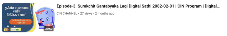 As of September 2025, CIN has 274K followers on Facebook (@cinkhabar) and 29.3K subscribers to its main YouTube Channel, so it provides a very powerful channel through which our jointly developed resources can be disseminated. Moreover, its radio broadcasts have a reach of some 6 million people across Nepal, and community radio is still one of the main means through which those in isolated communities can gain reliable and useful information.