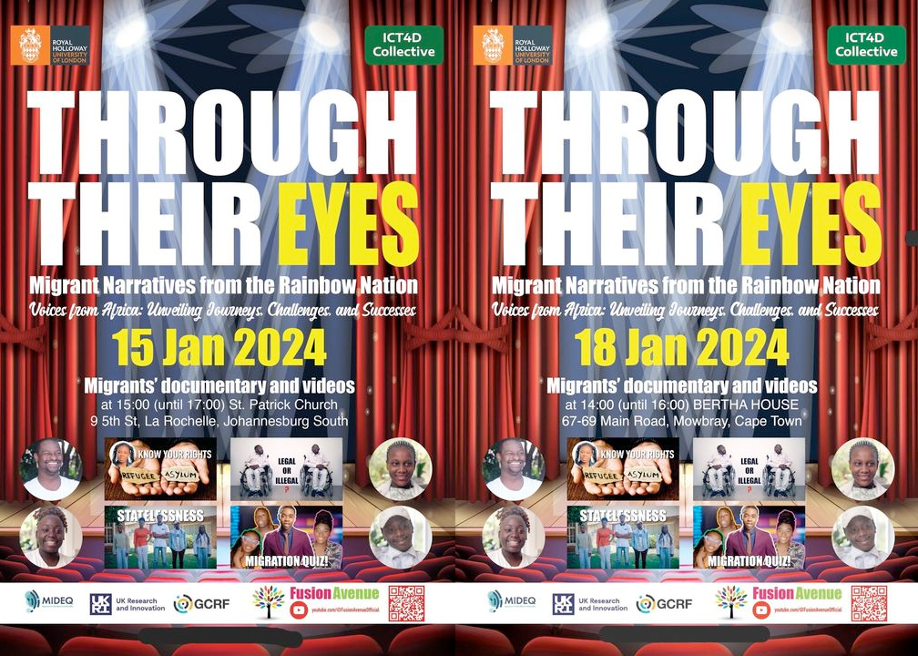 These interventions were conceived and facilitated by the Digital Technologies and Migration work package (WP9) of the MIDEQ Hub funded by the UKRI Global Challenges Research Fund (GCRF). WP9 is led by Professor G. “Hari” Harindranath and Professor Tim Unwin CMG, with the support of Dr. Maria Rosa Lorini (who led the work in South Africa), based at the ICT4D Collective (Royal Holloway, University of London, UK). The resources were created collaboratively with migrants and organisations in both the Johannesburg and Cape Town regions, including the Scalabrini Centres in Cape Town and Johannesburg, the University of Cape Town, UNISA’s Information Systems Department, Stoneintheshoe, Rainbow Media, and SIHMA. Other organisations involved in the initiative have included Adonis Musati, Cape Town TV, Ubunti-Bethu, and JL Zwane