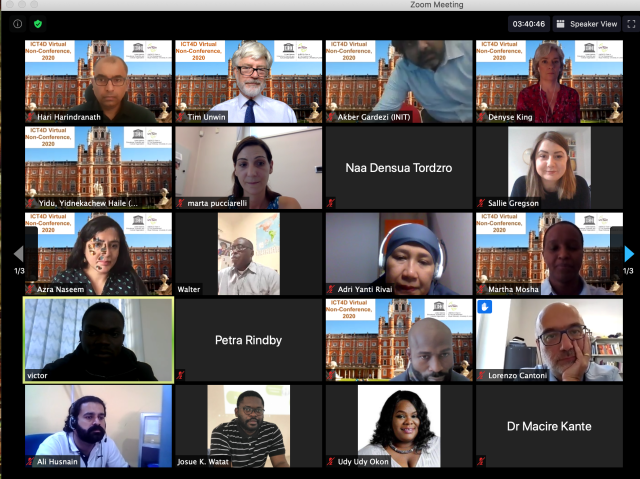 Because of COVID-19 it was not possible to convene the ICT4D Non-Conference as originally intended, but instead we convened a one-day virtual event on 16th September, when all of those originally selected to present a poster or demo were given an opportunity to discuss their research. All posters are listed here and demos here. The full posters are available by clicking on each of the authors’ links, and links to videos of the demos are also available (links also below).